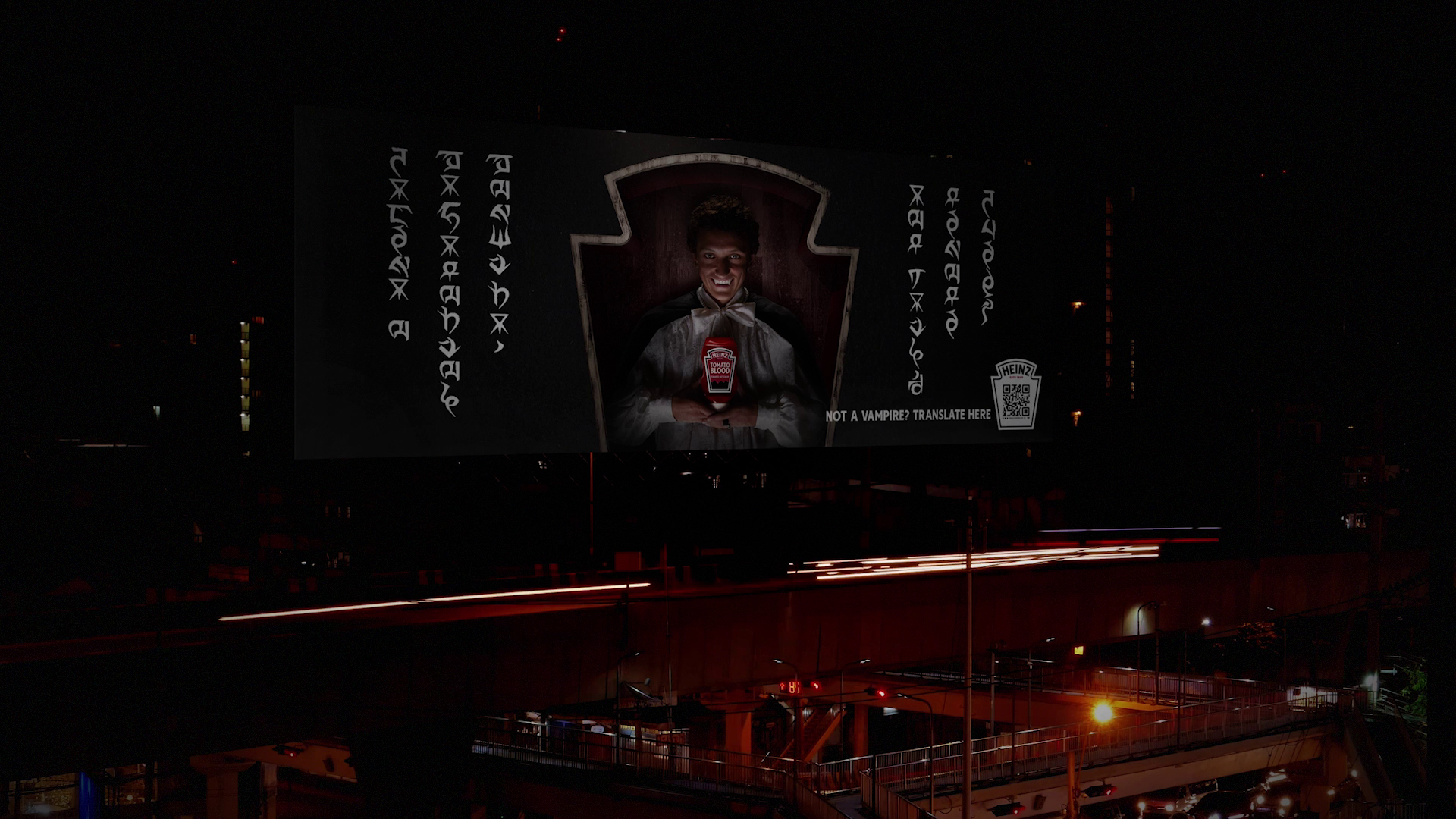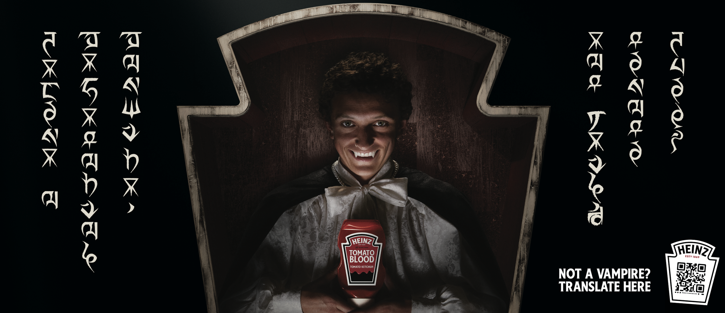 Custom type (and language) design for Heinz Tomato Blood, to speak to vampires globally.